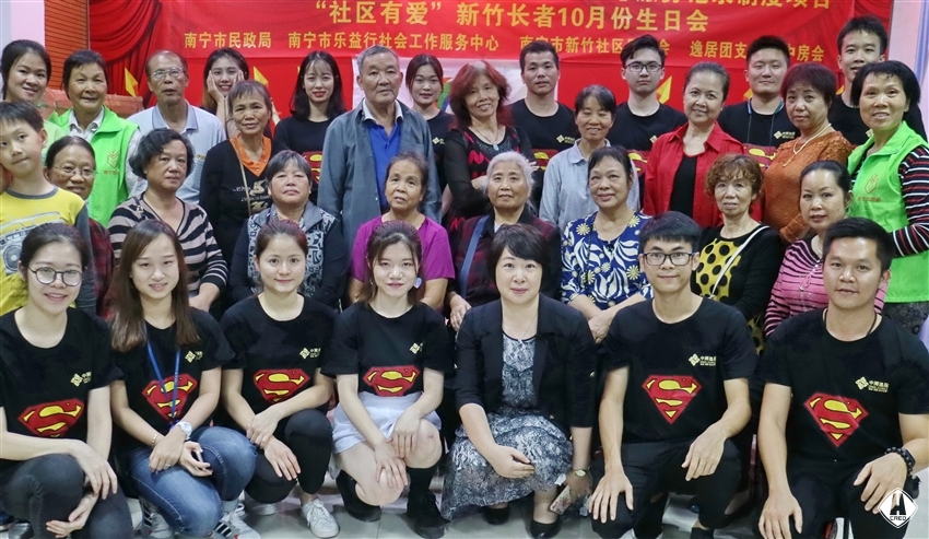 "祝你生日快樂!祝你生日快樂!" 祝福的歌聲和掌聲不斷響起來(lái)。2017 11 1 日下午,在青秀區(qū)新竹社區(qū),十幾個(gè)老人聚在社區(qū)的一間活動(dòng)室里,參加 "社區(qū)有愛"新竹社區(qū)長(zhǎng)者 10 月份生日會(huì),一起慶祝生日。本次關(guān)愛社區(qū)老人公益活動(dòng)由南寧市樂益行社會(huì)工作服務(wù)中心、新竹社區(qū)居委會(huì)和逸居公司團(tuán)支部、中房會(huì)等聯(lián)合舉辦。