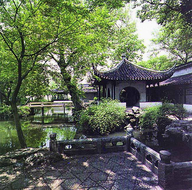 拙政園始建于明正德四年(公元1509年)。它雖經(jīng)過幾百年的蒼桑變遷,但這里處處山水明秀,廳榭典雅,花木繁茂,漫步在其中,你仍能感受到其平淡疏朗、曠遠明瑟的明代氣息,游過全園,給我印象最深的是位于中部花園的最東面的"梧竹幽居",這里造型非常別致,四個大大的圓洞門使人馬上聯(lián)想起八月十五晚上的月亮。而更神奇的是如果你站在亭子里向外看,這四個圓洞門又恰似四個巨大的鏡框,鑲嵌著蘇州園林一年四季的風光。