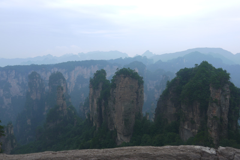 我們的第二站:袁家界。在這里,我感受到了一個(gè)現(xiàn)代高科技帶來(lái)的震撼。站在高度300多米的百龍?zhí)焯莸耐该飨潴w里,隨著天梯的緩緩上升,我們就像鳥兒一樣穿出山體,劈開云霧,沖天而起,一種從未有過(guò)的刺激感引得我們聲聲尖叫。到達(dá)山頂,一排排石巖赫然展現(xiàn)在我們眼前,高低錯(cuò)落,森然有序,儼然列隊(duì)的將士,聽(tīng)導(dǎo)游說(shuō),這便是48將軍巖,真是“壯如其名”。