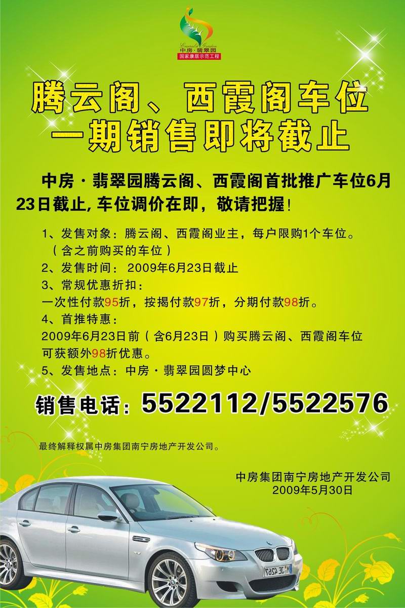 騰云閣、西霞閣車位一期銷售即將截止